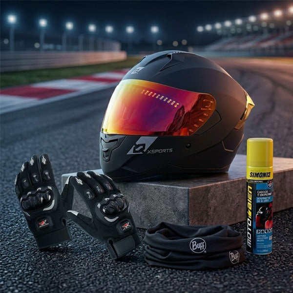 - Todo lo que necesitás para rodar seguro y cómodo El Paquete Motero Esencial incluye los 4 productos que todo motociclista necesita, más un regalo exclusivo: ✓ Casco M67 Negro Mate Certificado, diseño deportivo, ventilación optimizada